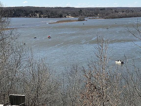 250 feet lake front on bluff with fantastic view over lake of the Ozarks and up Cole Camp Branch. Deck along full length of house. Huge Garage for parking lake toys!