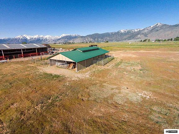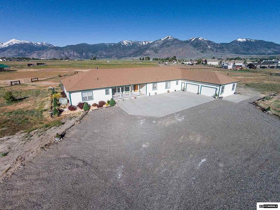 In the heart of the picturesque Carson Valley with endless views of Heavenly Valley as well as the Sierra Nevada and Pinenut mountains you will find a 10 acre, 3100+/sf ranch style home (energy efficient year round) featuring 4 bedrooms, 3 1/2 bath, spacious (24??? x 80') 5 car garage with a overhead attic storage (48??? x 6??? x 4???) with a drop down metal ladder. A 12??? x 24??? cement RV pad with 30 amp hookup / electric outlet and dump station is adjacent to the garage.