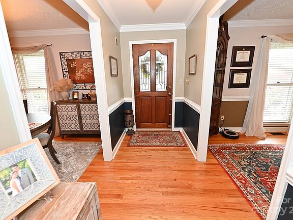 Beautiful & Renovated four bedroom, two bath, 2,458 SF home located on the 2nd hole of the Private Jones Championship Course in Rock Barn! This split-bedroom home provides convenient one-level living and a spacious screened porch as well as a stone patio with a fire pit for comfortable outdoor living too. The home includes hardwood floors throughout the main living areas and the primary, ensuite bedroom. The primary bath and guest bath have been completely renovated and include custom tile showers, tile floors and double sink vanities. An over-sized laundry room with granite countertops, custom cabinets and a large stainless-steel sink is located on the guest bedroom side of the home. A bonus room with a skylight window and a full-sized door providing easy access to the floored attic storage space. All of this and just a short car or cart ride to all the amenities of Rock Barn Club and Spa! Hurry, don’t miss this great opportunity to live in the heart of this wonderful community!