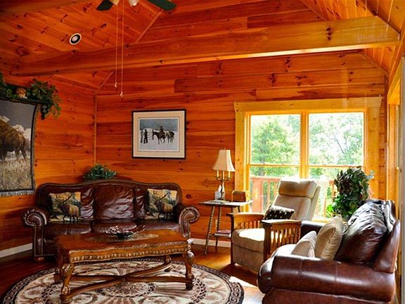 Absolutely magical views and total privacy! That's what this lodge home offers for you! No matter where you choose to relax - Living Room, Dining Room, Quiet Den or Game Room - the mountain top views are unbelievable! Relax in the private hot tub and unwind - Red Wolf Lodge style! Only a few cabins in Hickory Hollow have this MILLION DOLLAR view. There are only two cabins on Briley Way so the privacy is second to none. The cabin had been recently updated with new stainless appliances, wainscoting, carpet, counter tops, double heat and air units, tile bathroom, new windows on the main level and new hot tub. As well as driveways freshly paved and cabin freshly stained. Few cabins have their own well not only does this one but it also has 3 holding tanks.