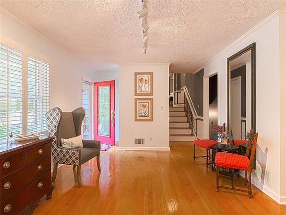 This CHARMING home w/ HOT CHAMBLEE address is steps to ST PIUS & easy access to I-85-Well maintained & DRESSED UP w/ BEAUTIFUL CHANDELIER LIGHTING, CUSTOM CABINET hardware, Grass cloth bath, PLANTATION SHUTTERS, gleaming HARDWOOD FLOORS, STAINLESS STEEL appliances & WROUGHT IRON railing-WALK-OUT yard is a GARDNERS DELIGHT w/ beautiful flower beds & privacy fence-Enjoy dinners from your SKY LIT SCREENED PORCH-GARAGE & tiled BASEMENT w/ cozy FIREPLACE-Master feat sitting area, DOUBLE VANITY w/ GRANITE, soaking tub & stand up shower-Double pane windows & fresh paint.
