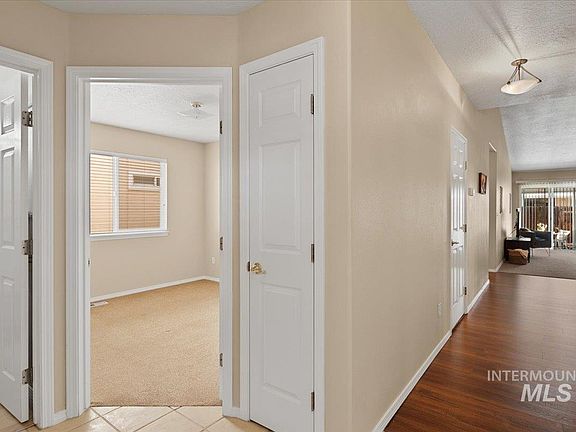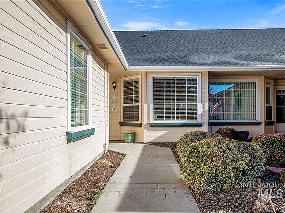 LOW MAINTENANCE at it's finest with this CHARMING townhouse in a GATED 55+ community in highly DESIRABLE NE MERIDIAN!! This beautifully UPDATED and meticulously maintained home features brand NEW CARPET throughout the spacious and OPEN living area and primary bedroom. Complete w/ a cozy TILED gas FIREPLACE and ample NATURAL LIGHT, the living and dining areas flow seamlessly, creating an inviting space for everyday living. The kitchen includes a convenient pass-through BREAKFAST BAR, perfectly connecting spaces with the living area. The primary bedroom retreat w/ sliding glass door opens up to a COVERED PATIO—perfect for enjoying the outdoors in comfort and privacy. The en-suite bathroom offers DUAL VANITIES, NEW VINYL flooring, and freshly PAINTED CABINETS. Three bedrooms in total, one of which makes an excellent front OFFICE space! Quiet neighborhood includes a covered park area, perfect for spending outdoor time with FRIENDS and NEIGHBORS. SNOW REMOVAL and YARD CARE INCLUDED! DON"T MISS!!