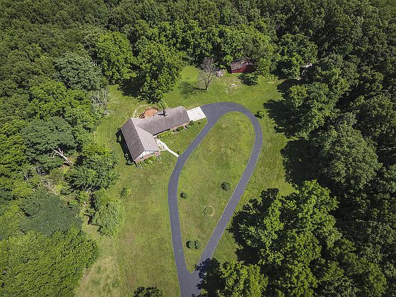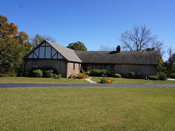 A long circle drive leads to this very special property. It's located on 26 acres (mostly wooded), with a beautiful big spring fed pond. This mostly brick walkout basement home needs some updating, but it features 4 living areas, formal dining room, a great kitchen with lovely cabinets along with double ovens and a center island. There are 2 fireplaces with inserts-one in the hearth room and another downstairs in the family room. There is a big John Deere room too. In addition to the house, there is a barn, a detached garage workshop and an RV carport. This is a wonderful property with something for everyone.