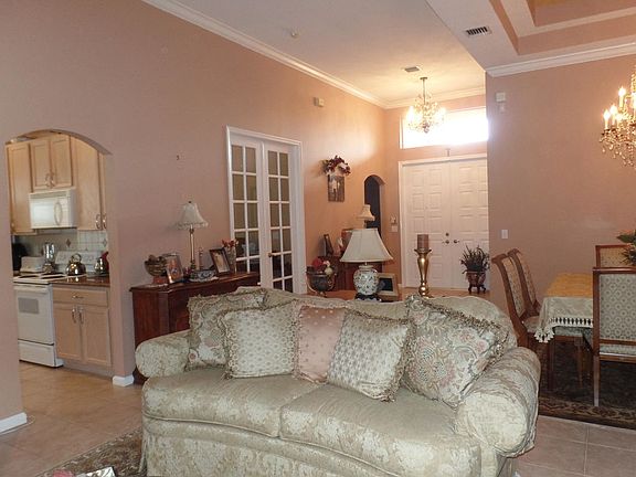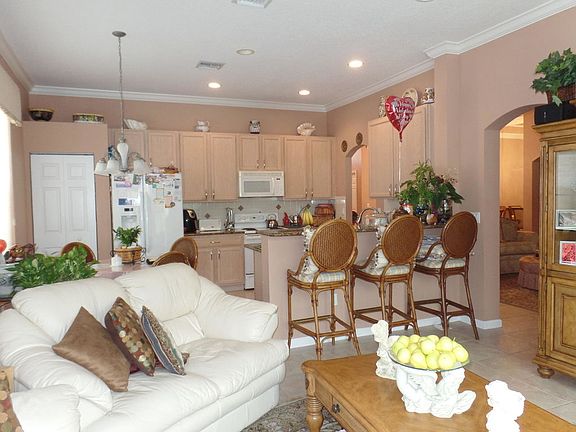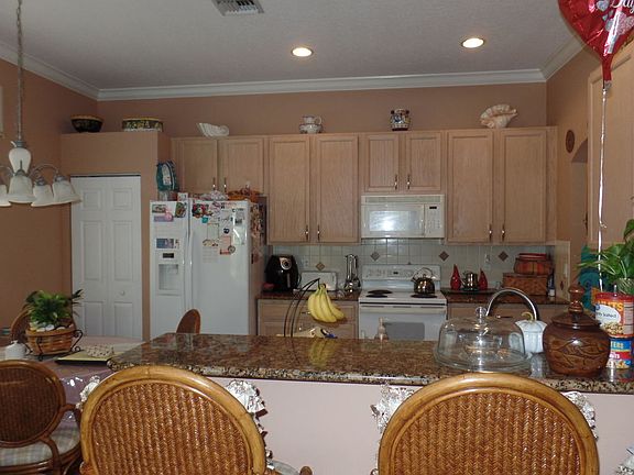 As you approach the front door of this true 4 bedroom house you're greeted by a beautifully landscaped walkway to a screened double door entry. Be prepared to be impressed with the tall ceilings as you enter through the grand foyer where you'll see the formal living & dining rooms. The eat in kitchen boasts wood cabinets & beautiful granite counters, snack bar opened to a large family room. Outside is a fully screened patio facing a quiet & serene preserve - no rear neighbors. Triple split bedrooms gives everyone their own space. This home has a long driveway for all your guest & located on a quiet cul-de-sac. The maintenance fee covers lawn care, basic cable and fantastic amenities for all to enjoy & manned gated entrance to the community!