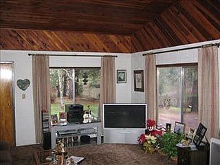 Just Enough! Surrounded by a park like 1.86 acres, this Gambrel style home affords lovely views of the seasonal pond. Like a modern cabin, features include vaulted redwood ceiling in the living room and choice of ground floor bedroom or an even larger upstairs bedroom, plus the attached shop could be additional living area. Newly rebuilt deck adds to the livability!