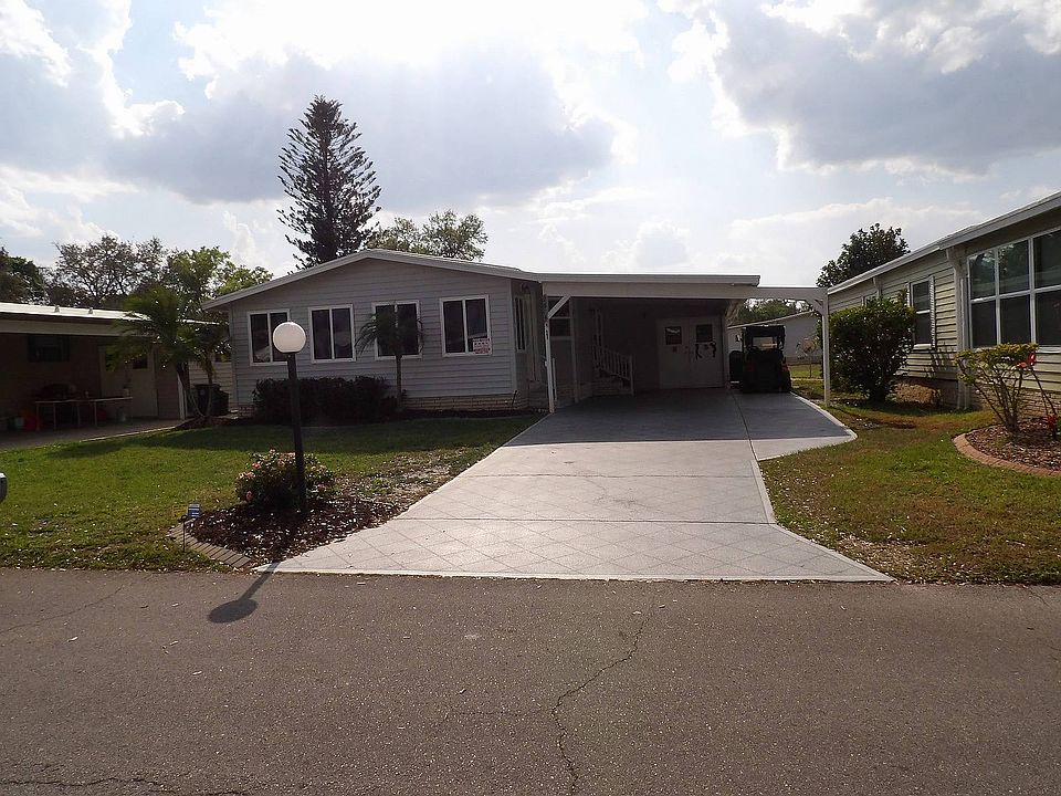 Furnished 1988 24 X 40 2 BR 2 BA with 10 X 11 TV Room or Office with Closet offers multiply features. Open floor plan, 9.5 X 20.5 FL Room converted into Family Room with self standing bar and new windows, 15 X 22 Bedroom Addition in the back, 11 X 16 Living Room, Master Suite with step in shower, 10 X 11 Kitchen with breakfast bar, 8 X 9 Dining Room, Inside laundry available, New Metal Roof and gutters coming, Siding Replacement complete, Golf Cart path along side of home and in back, And 12 X 20.5 Extended Shed with 6 X 12 Laundry Area, All this plus a golf cart included. Have to see to appreciate this home. SB3876