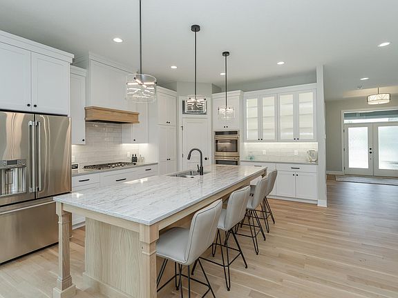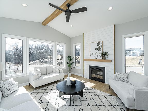 This exquisite & luxurious ranch style home boasts 5 bedrooms & 4 elegant bathrooms. Situated on a peaceful cul-de-sac on a half acre lot. Inside, you find stunning high end finishes w/ three decorative fireplaces that create a warm and inviting atmosphere, complemented by the vaulted ceilings that add an airy & expansive feel. The four-season porch offers a perfect retreat to enjoy the changing seasons. The heart of this home is the gourmet kitchen, adorned w/ custom painted cabinets, sleek quartz countertops, & beautiful hardwood floors, creating an ideal space for entertaining. The primary suite is a true sanctuary, highlighted by impressive 11-foot ceilings and a gorgeous bathroom suite complete with ceramic tile shower & in-floor heating. All main level living at it's finest with floor-to-ceiling windows that flood the home with natural light. The exterior exudes classy, timeless, modern curb appeal with beautiful stone accents nestled in Scenic Oaks.