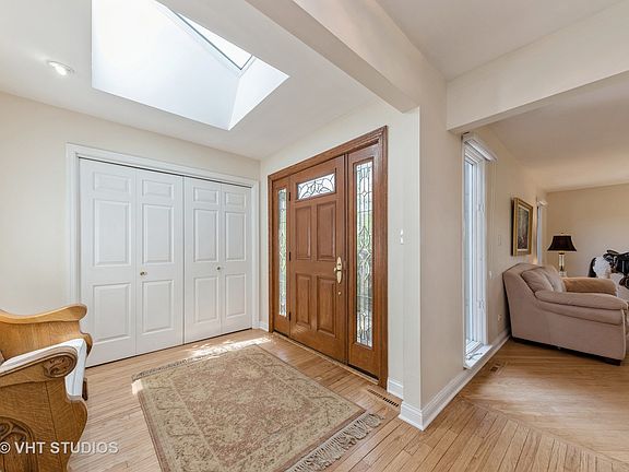 Bring your horses and chickens! Spacious doesn't begin to describe the feeling here - both inside and out! This Meticulously maintained HOME is flooded with natural light and offers amazing views of your acreage from every room, plus a desirable floor plan that's ideal for relaxed living as well as hosting a crowd. The kitchen is a Chef's Dream with loads of custom cabinets, Solid Surface countertops, and newer appliances. Gather in the comfortable family room with an incredible Fireplace Feature wall, sliders to the deck, and direct access to the Enclosed Porch. Separate dining room, huge living room, welcoming foyer with Skylight, and updated powder room complete the main level, with Hardwood Flooring throughout. Upstairs, the Primary Suite is a true retreat offering a Luxurious private ensuite with double sinks, Double Shower and a separate water closet. A full guest bath with double sinks services three more Generous Bedrooms. The walk-out lower level is next level! It features an enormous Recreation Room with Wood Burning fireplace and sliders to the beautifully landscaped yard, plus the 5th bedroom, a nicely Updated full bath, a sizeable laundry room, and yet another huge Bonus Room (Gaming, Exercise, Theater, Hobby) with more sliders to the Great Outdoors. Relax and enjoy multiple Brick Paver Patio areas plus a deck, fire pit, and your massive heated pool. All of this is situated on nearly 5 acres, offering a five-stall barn and Two Pastures for your horses. Ride your horses right from your barn onto the Lakewood Forest Preserve Trail! This custom Oasis is truly move-in ready. Feels like country living, yet close to shopping, dining, entertainment, and more. Check out the YouTube video!