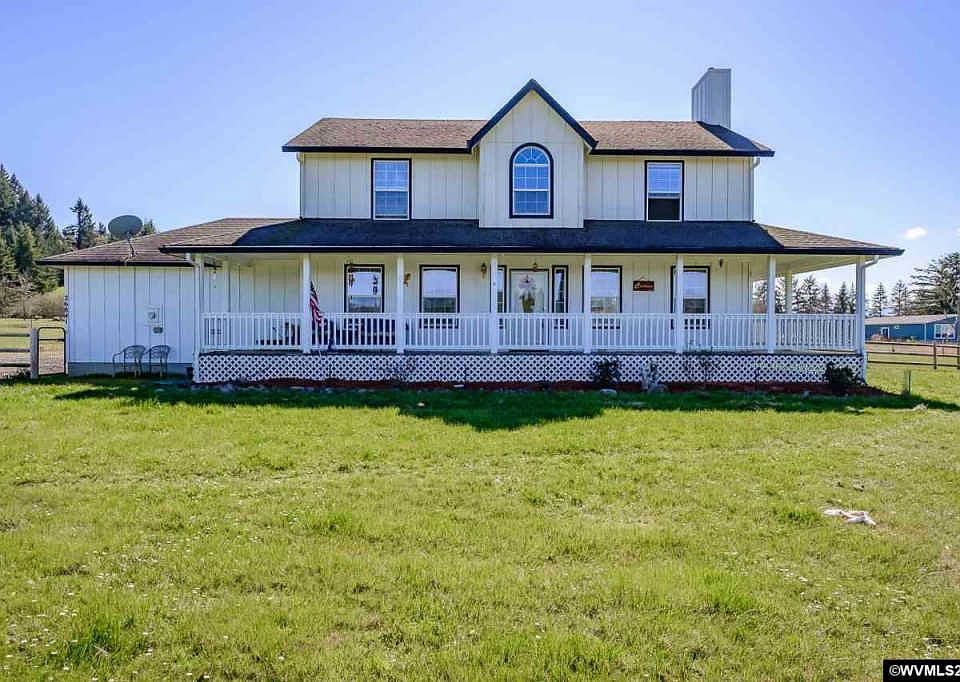 Accepted Offer with Contingencies. This picturesque home w/wonderful views is centrally located between Corvallis & Eugene for easy commuting. Sitting on fully fenced 2.84 acres, this 3BR/2.5BA home features a wrap around porch, open kitchen w/SS appl, & pantry, Lg master suite w/vaulted ceilings, walk in closet, separate jetted tub & shower, also an office/nursery, Lg laundry room w/cabinets & folding counter, loads of storage, Central AC/Heat Pump, 12x20 shed, 3 post fence on front yard, field fence on acreage, room for RV & toys!