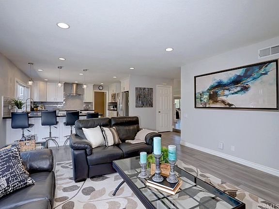HIGHLY UPGRADED MADRID CASA SARGA HOME, DOWNSTAIRS BEDROOM, POOL SIZE ENTERTAINER'S BACKYARD! As you enter this beautiful home, you're instantly greeted by high, vaulted ceilings, a sweeping staircase, formal living room and an array of windows allowing in an abundance of natural light. Highlights include a soft, neutral color pallet, wood look tile flooring, a beautifully remodeled kitchen with quartz countertops, stainless steel appliances, pantry and eat-in breakfast counter. The kitchen is open to the family room with cozy fire place and is adjacent to the dining room all of which lead to your meticulously maintained and expansive backyard setting...the perfect entertainment space with built in BBQ, ample seating areas FIRE PIT and a huge, open grass area with low maintenance artificial turf. The master suite is generous in size and includes a large walk-in closet, en-suite master bathroom, dual vanity and walk-in shower. Upstairs are four additional bedrooms, a large linen closet and secondary bathroom with dual vanity, quartz counters and tub/shower combo with subway tile walls. Enjoy INDOOR LAUNDRY and a large 3 CAR GARAGE with epoxy flooring. Inquire for information about MULTIPLE SCHOOL OPTIONS unique to this neighborhood. Enjoy Lake Mission Viejo with swimming, BBQ's, fishing, boat & paddleboard rentals, concerts & events. Sierra Rec Center is just a short stroll away with several membership options to the pool, spa, water slide, fitness center, & more! WELCOME HOME!