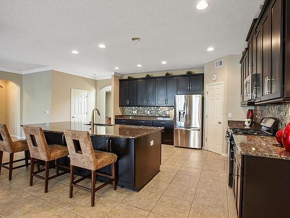 Exquisite home shows like a model. This enormous two-story 5,073 sq ft home is loaded w/upgrades. Plenty of space for everyone with 6 bedrooms, 5 baths + office + massive upstairs bonus/game + theater room, 3-car tandem garage & stunning custom pool & spa in the peaceful community of Arbor Woods. The grand foyer is bright & welcoming, office is situated at the front of the home with tray ceiling & crown molding. Formal living room is directly across. Gourmet kitchen has it all, with gorgeous espresso 42 upper Maple wood cabinets trimmed in crown molding, under cabinet lighting, stainless steel appliances, gas stove, walk-in closet pantry, pristine granite countertops, designer backsplash, enormous center island also serves as breakfast bar. Kitchen is open to the spacious family & dining room making it perfect for entertaining with views of the incredible pool. All bedrooms are spacious. Master suite boasts tray ceilings, crown molding, relaxing garden tub, walk-in shower, dual sinks & vanities. Home also includes top of the line Kinetico Whole House Water System. The uniquely shaped custom heated pool & spa offers multiple entry points, custom decorative tiled walls, waterfalls and is breathtaking. Pool package valued at $100,000. The lanai is upgraded with pavers & is completely screened. Arbor Woods amenities include pool, splash pad, playground, gas grill, cabana & trails. Minutes to Wiregrass Mall, Florida Hospital, Wiregrass State College, Tampa Premier Outlets and close to I-75 & I-275. NO CDD!