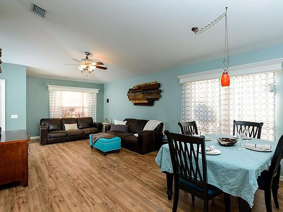 This amazing 4 bedroom 2 bathroom home boasts 1,956 heated square feet and is located in the beautiful community of Lexington Oaks. Walk through the front door and be welcomed by rich laminate wood flooring and vaulted ceilings to a spacious living/dining room area. Enter the kitchen to find stainless steel appliances throughout, tile back splash and custom trim work on the windows. Master bedroom is a great size with walk in closet and a master bathroom with his and her sinks, garden tub, and walk in shower. The family room has sliding glass doors which provide great natural light and are the gateway to a wonderful backyard lush with mature landscaping, paved patio area and fire pit area fantastic for entertaining. The garage area has been semi-converted to an air conditioned flex space, featuring laminate wood floors and lighting making it great for an office area or game room. Enjoy no backyard neighbors and being close to many amenities. Lexington Oaks offers a beautiful 18-hole golf course, tennis courts, basketball court, and volleyball court. Minutes from restaurants, shopping, I-75, Wiregrass Mall and much more! Don't miss out...make your showing appointment today!