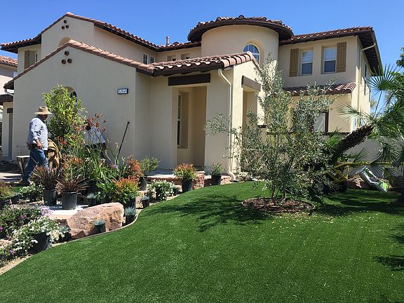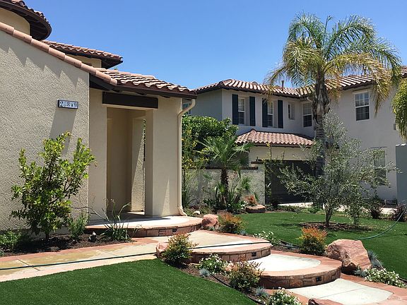 Extravagant and One of a Kind Stevenson Ranch Torcello 5+5+3+Loft Home w/ Over 4,100 SQ FT of Open and Functional Living, Bed & Bath Downstairs, Grotto Pool & Spa, all located on a Cul-De-Sac! The interior highlights include crown molding, upgraded baseboards, newer wide plank engineered hardwood floors on the first level & yoga studio, and the primary retreat. Newer tile flooring in the laundry and newer carpeting on the stairs and bedrooms on the second level. Coffered ceilings, stunning fixtures, newer paint, newer HVAC system w/3 programmable zones, tankless water heater, Hunter Douglas blinds, and so much more! The grand entrance flows into the formal living and formal dining. Stunning center island cooks' kitchen w/ gorgeous quartz counters, upgraded backsplash, Thermador cooktop, double ovens and dishwasher, built-in microwave, walk-in pantry, and tons of counters, and cabinet space. The dining area opens to the family room and highlights a featured tile wall w/ a sleek and modern heat and glow natural gas fireplace. Powder room for guests, and an office w/ its own entrance and could be converted to the 5th bed. Head up the upgraded staircase to find a loft w/ plantation shutters, primary suite w/ a retreat that is currently being used as a yoga studio, stunning stand-alone tub, newer marble tile floors, dual sinks, a huge glass-enclosed walk-in shower, vanity, and additional sitting area. Three additional good-sized bedrooms, one of which has its own ensuite bathroom and two share a jack n jill. Three car direct access garage w/ newer epoxy flooring, newer garage doors w/ lift master jackshaft wifi garage door openers and enter into the laundry room w/ storage. Secluded and tranquil backyard featuring a 40,000-gallon saltwater pool w/ grotto, waterfalls, and Baja shelf w/a wifi/BlueTooth programmable light show!! Covered outdoor kitchen with natural gas grill, refrigerator, sink, and bar. Ample amount of lounge chair space, and a grassy area!! Large storage shed decorative wrought iron gates, enclosed front patio that connects to the backyard. Solar and conventional landscaped lighting, programmable automatic sprinklers, natural gas fire-pit, and newer exterior paint. It has such a tropical feel that you will never want to leave home! If this wasn't enough, this beauty is conveniently located near restaurants, award-winning schools, shopping, and easy freeway access! Don't miss the opportunity to make this your NEXT HOME!