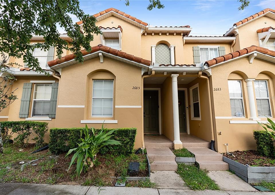 Welcome to your perfect home away from home, and is being sold FULLY furnished. Located in the gated community of Crestwynd Bay, this three bedroom townhome is conveniently located near Disney and all the attractions Central Florida has to you. With over 1100 sq ft of living space, you'll have plenty of room for family and friends. Enjoy a spacious living room that opens up to the kitchen giving you an open concept feel. The two bedrooms on the second floor are great for guests. Enjoy the spacious primary bedroom with its own en-suite bathroom, so you can have some privacy after a long day at work or play! Third bedroom is on the first floor, perfect for those who don't want to deal with stairs! No carpet all throughout the townhome, making it easy to maintain! With HOA fees covering basic TV and internet service as well as access through a private gate - there's no need to worry about extra bills! Whether you're looking for a primary residence, an income producing short-term rental property or long-term rental property - this is just what you've been waiting for! Unit is currently has active short sale showings in place. Schedule your private showing today and experience everything this lovely townhome has to you. The community offers a pool and playground.