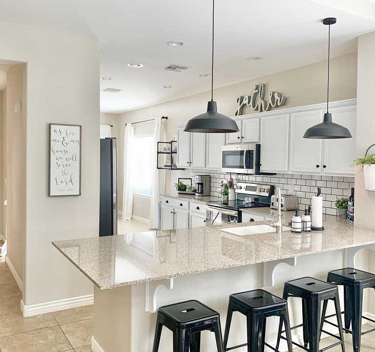 Step into this outstanding single level home now available in desirable Gilbert! Providing great curb appeal with a cute front porch! Remarkable interior features 3 bed, 2 bath, vaulted ceilings, neutral color palette, custom shiplap throughout and living/dining area. Eat-in kitchen offers breakfast room, recessed lighting, breakfast bar, granite countertops and subway tiled backsplash. Charming master suite offers a spacious full bath with dual sinks and walk-in closet. Low maintenance backyard is an entertainers dream with covered patio, brick pavers and artificial turf! Community offers pool, fitness center, and rec room, all included in HOA fees! Located 2 miles from Trilogy Golf Club, 15 minutes to Loop 202 FWY & San Tan Village Mall.