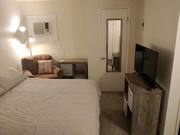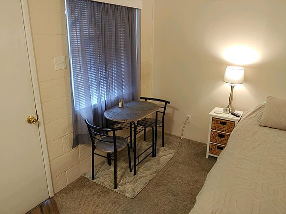 Beautifully situated in the heart of Granite Dells, yet easily accessible to Highway 89 and 89A! Picturesque climbing boulders and Granite Creek spillway flowing by are some of the things that make this place a nice retreat from your run of the mill apartment complex. Gorgeous quiet setting nestled by The Dells, the space is your own, with an assigned parking space and a shared coin-op laundry room. The apartment features new kitchen with granite counter tops, a four burner range with oven, Microwave, keurig, toaster, nice space for dining and using your laptop, and a 40" Roku TV with YouTube TV included. The queen-sized bed is very comfortable with a high end mattress, and the bathroom has new fixtures. All bedding, towels and kitchen utensils are included. Everything included in price including utilities, WiFi , coin-op laundry on-site.