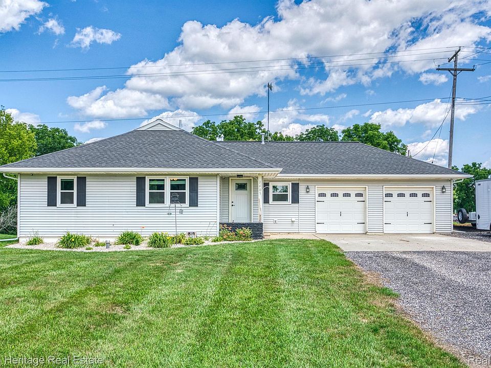 Move in ready beautiful Ranch on a beautiful country acre with perfect location for easy commute to East Lansing or Detroit. Large ranch offers 1700 sq ft of living all on one floor. First floor laundry, nice open kitchen with large area for living room or dining room, 3 bedrooms, newly remodeled bathroom, primary bedroom overlooks the beautiful property and has enough room to add a primary bathroom, large family room/flex room with pellet stove and projection TV walks out on a new deck. Oversized 2 car garage is heated and insulated. Home offers many new updates including windows (2021) roof and gutters (2021), new well bladder tank(2022) newer appliances, pellet stove, new shed. BATVAI Items in the home maybe available to buy. The refrigerator in the kitchen is the only one that stays with the home. Pellet stove, projector and screen, garage heater and security camaras stay with the home. Zero Turn, pool table and side by side are all available to purchase.