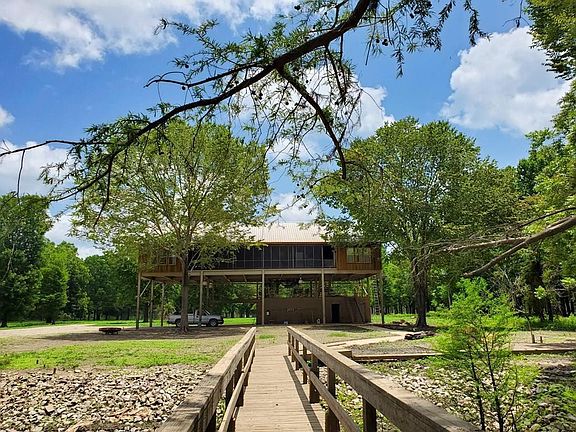 This 4.14+/- lakefront property on Lake Mary in Wilkinson County, MS, is furnished and is a place you need to check out! Located 18 miles from Woodville, MS, this property is less than an hour and a half from New Orleans and Baton Rouge. Lake Mary is an oxbow lake that is fed from the Mississippi River, bringing abundance of fish into the lake. The property is gated, and the steel frame cabin was built close to the lake for amazing views. It has a boat ramp and fishing pier to catch fish all year around from your back porch. This place was built with entertaining and the avid outdoorsmen style in mind. Upon walking through the screened in porches, you will be greeted with tall ceilings and an open floor plan. This 4/2 cabin has everything you would need in a vacation getaway! It features heart pine floors and brick pavers throughout for easy cleaning. The kitchen is spacious with a huge fridge/freezer combo and island. Exposed beams give this home a grand feel.