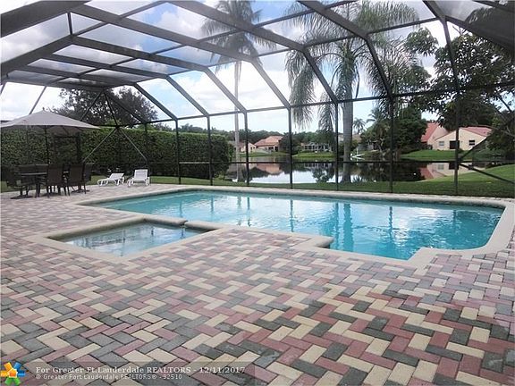 Elegant and remodeled Waterfront pool home. This home was originally a 4 bedroom but previous owner converted it to a 3 bedroom with Huge master and Custom Closets. Upgrades include:New Travertine Tile, Black Bamboo wood floors,Gorgeous kitchen with White shaker Cabinets and Blue pearl granite, Knock down textured walls, Bonus room/Office, new lighting, Crown molding & base boards. Salt chlorination system for pool,all new doors & hardware, built-in closets,central Vac, Prewired for full house generator