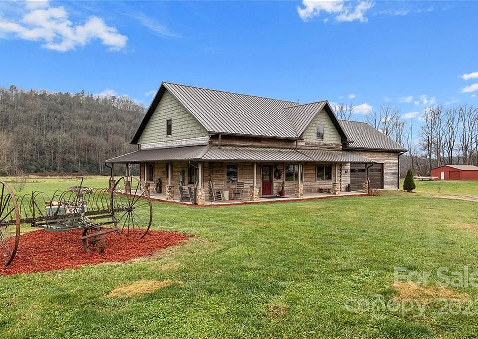Beautiful Log Cabin by Mastercraft Builders of Western North Carolina (Builder's own Home) including approximately 26 acres of prime bottom land. 360 degree Mountain Views. Includes 3 adjacent rental properties.