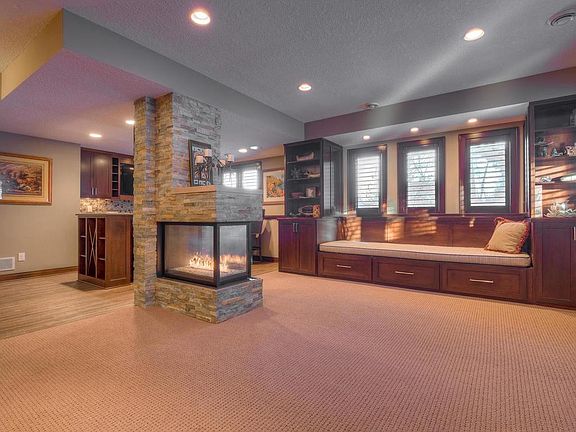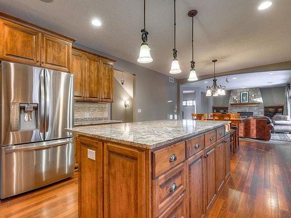 Impeccably maintained home in great location! Spacious, gourmet kitchen features granite countertops, alder cabinets, tiled backsplash, SS appliances, & large center island. Kitchen opens up to informal dining and living room; perfect for entertaining. Thoughtfully designed family room features full bar, complete w/ sink, fridge, & dishwasher, as well as unique, 3 sided stone fireplace, & beautiful built-ins. Private, wooded .4 acre lot w/ walking distance to Dakota Trail.