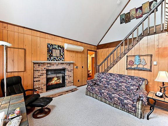 Chalet home in a four-season amenity filled community in The Northern Poconos, just 2 hours from the NY, NJ and Philadelphia Areas. The Hideout offers a fun lifestyle with a plethora of planned activities, social groups and amenities, or you can just relax in your own solitude. The home features 2 bedrooms, the loft overlooking the living room can be used as a third sleeping area. There's a one car garage, storage shed, a large front deck, propane line for the grill. The home has an open floor plan, a second living room with vaulted ceilings and a den/office. Furniture included., Beds Description: 1 BED 2nd, Beds Description: 1Bed1st, Beds Description: 1 BED 2nd, Baths: 1 Bath Level 1, Baths: 1 Bath Level 2, Eating Area: Dining Area
