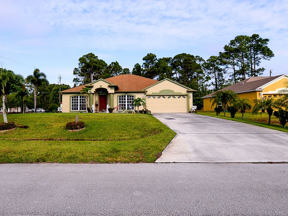 Immaculate condition on an oversized corner lot with exterior 10 x 12 hurricane rated secured shed, this is a gorgeous find in the heart of Port St Lucie. This home features 3 Bedroom, 2 Bath, with Den and 2 car garage.It has an undertrussed 11 x 18 porch and plenty of room for a pool. Home has vaulted ceilings with crown molding throughout, upgraded granite counters, newer stainless steel appliance package, 42 in cabinets, tile in most areas, laminate in family room, and carpet in bedrooms.You will love the location only moments from shopping and tradition hospital and dining, or about 20 minutes to the beach, 1 hour to PB Airport, or about 2 hours to theme parks. For the commuter, about 5 minutes to turnpike or I-95. This home shows pride in ownership from the original owner and is ready for a new family.This one has gutters, hurricane shutters, city water, irrigation, exterior shed, and beautiful over-sized corner lot and new or newer homes in the area. Call the listing agent today to learn about opportunities for closing cost assistance.