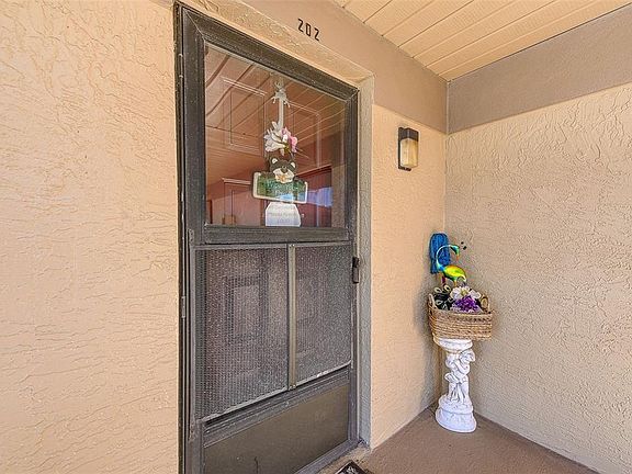 Welcome to 2685 Sabal Springs Circle, Unit 202—an inviting second-floor condo in the heart of Clearwater, offering a perfect blend of privacy, space, and convenience. This 2-bedroom, 2-bathroom residence boasts over 1,100 square feet of comfortable living and is nestled in a peaceful, park-like setting with lush landscaping. Step inside to find a bright, open layout featuring a spacious living and dining area, ideal for relaxing or entertaining. The kitchen, filled with natural wood cabinetry and ample counter space, flows seamlessly into the dining room through a convenient pass-through. The large primary suite includes dual closets and an en-suite bath, while the generously sized second bedroom is perfect for guests or a home office setup. A bonus enclosed sunroom provides extra space for reading, working, or simply enjoying views of the serene pond and mature trees. This unit also includes interior laundry and abundant storage, including a dedicated storage room and multiple closets. Community amenities include a sparkling pool, tennis courts, and walking paths throughout the beautifully maintained grounds. With covered parking and a central location near shopping, dining, and just minutes from Gulf beaches, this condo offers an unbeatable opportunity for full-time residents or seasonal living. Experience comfort and Florida charm in this beautifully kept Clearwater retreat.