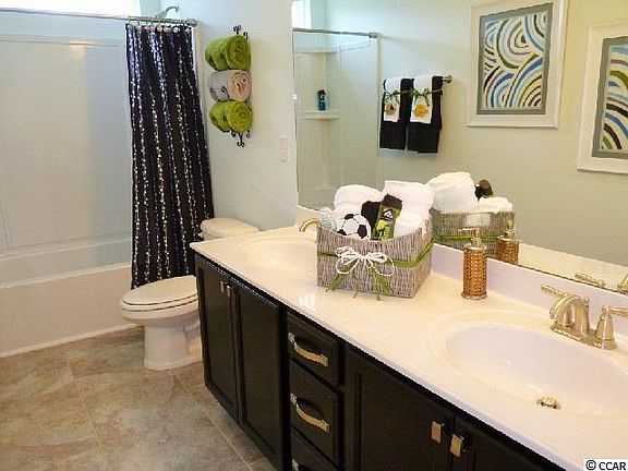 Located in the Natural Gas section of The Farm at Carolina Forest and the same plan as our model home, the Tillman floor plan offers ample living space, paired with functionality and amazing design choices. Thoughtful energy efficient details include a tankless hot water heater and radiant barrier sheathing to help lower your energy costs as much as possible. The first thing you notice upon entry will be the 8’ door and crown molding in your foyer and living areas. Beautiful hardwood floors flow throughout the living areas along with tiled wet rooms. Continue in to your kitchen which features our 36" staggered Cambridge Maple Bisque cabinets. These cabinets are a full overlay decorative cabinet which feature dovetail drawers and 5-piece decorative drawer fronts. The cabinets come appointed with crown molding and Brushed Nickel hardware to match the remainder of the décor around the house. Granite countertops and an oversized island top off the kitchen nicely along with some glass doors, pull out trash can and tilt out sink tray to make life easy. The master bedroom downstairs features crown molding along with a very large walk-in closet. The bathroom features a dual vanity sink, garden tub and separate shower. The 4 remaining bedrooms are a generous size and the upstairs also features an oversized loft measuring in at nearly 19' x 19'!! (Pictures are of the Tillman model and are for representation only, but available to show! Square footage is estimated and buyer is responsible for verification. Home is framed and should be available to move in near the end of April!)