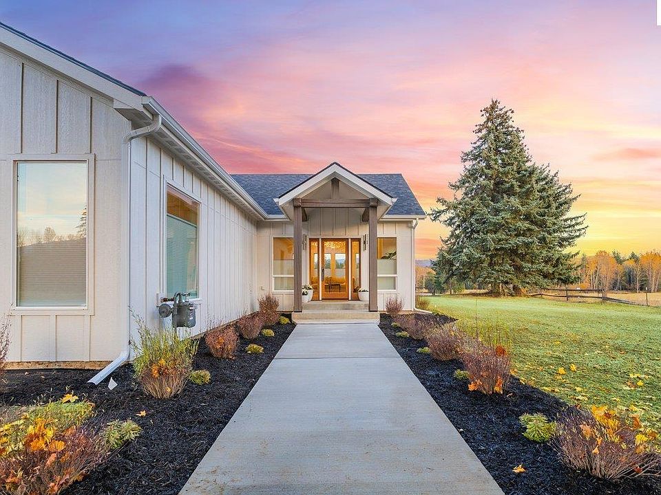 Welcome to your dream farmhouse, a 10-acre retreat offering the perfect blend of rustic charm and modern luxury with an out-of-town feel while still only minutes from Sandpoint. Nestled in a picturesque setting with breathtaking views of Schweitzer Mountain Ski Resort, this 3000 sq. ft. home is an idyllic escape for those seeking tranquility and comfort. Inside, you'll find 5 spacious bedrooms and 2.5 bathrooms with modern high-end fixtures and finishes. The interior boasts elegant hardwood floors, stunning floor to ceiling tile work, and a beautiful kitchen equipped with high-end Italian appliances and granite countertops. Natural gas heating and central air provides comfortable living; all while the paved road access guarantees convenience year-round. A Historic Big Red barn and two additional storage buildings, a creek fed pond and sweeping views of the mountains. Don't miss the opportunity to own a slice of paradise with modern comforts and unmatched natural beauty. The Owner is a licensed Idaho Real Estate Agent