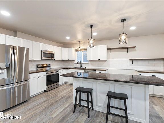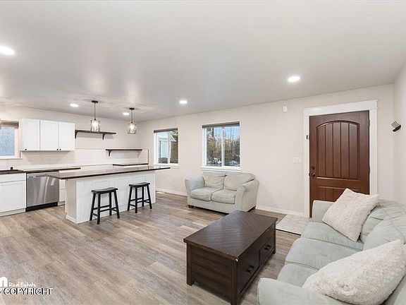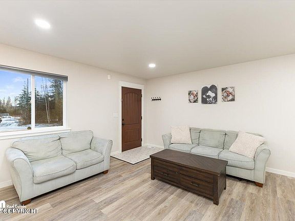 Fall in LOVE with this CHARMING, BETTER THAN NEW ranch home. Over the LITTLE SUSITNA RIVER and through the woods, it's convenient to schools and town, but so close to some of Alaska's best outdoor recreation areas. Enjoy a bright open living space and well designed kitchen with huge island. An efficient layout, deep laundry area, multiple closets, and an extra deep garage for a larger vehicle.The open cabinet space in the kitchen is intended for chef shelving or a bakers rack.