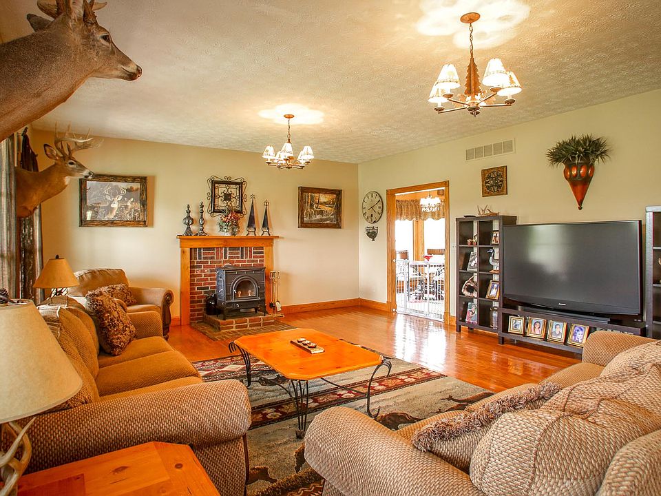 This beautiful house and land has 11+ acres. Kitchen has hickory cabinets with granite counter tops and all stainless steel appliances. The house has a new roof, new siding, new double paned windows that tilt in for easy cleaning, new central heating/cooling units. Pecan, Apple, Peach and pear trees, blueberries and grapes. Lots of deer roam the beautiful park like setting. There is a 48x31 detached garage that has 3 garage doors with automatic openers, the doors are 10x9. There is also a 1 BR, 1 Bath Guesthouse, a 20x40 Work Shop, a 71x12 Equipment Shed, a 20x20 Wood Shed, and 8x8 Greenhouse, and a Chicken House and Duck House. The pond is stocked with Bass. It even has a 40x38 Saloon! The Saloon has been used for Weddings, Birthday Parties and Family Reunions, could be rented as a Wedding Venue. This is a beautiful property, and is definitely a MUST SEE!