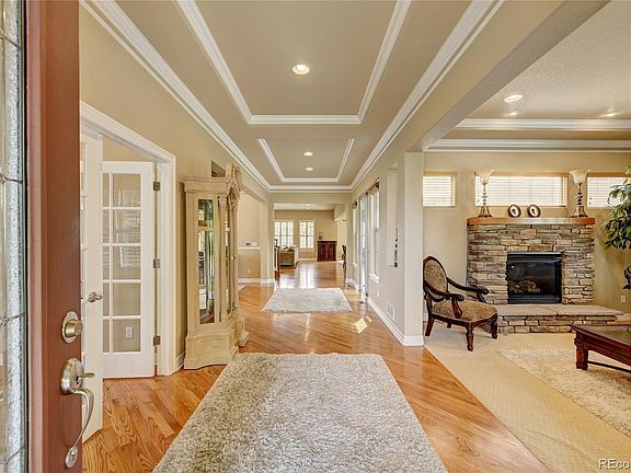 Price Improvement! Fall in Love with the highly desirable and sought-after Beacon Point Community in Southlands. Enter this Toll Brothers Cascade Model Home with upgraded 10 FT Coved ceilings. On the left is the office/bedroom and Dining Room with a Bay Window, and the Living room on the right w/ fireplace. Outdoor courtyard patio off the main hallway entry. The Large Family Room features a fireplace and upgraded windows and custom window coverings throughout. The massive kitchen with all the upgrades, Large Granite Countertops, Custom cabinetry, central vacuum, GE Monogram Stainless Appliance Package. Both rooms offer Great places for indoor gatherings. This magnificent home sits on a 1/2 acre that includes a backyard paradise with multiple sitting areas. On one end you have a Custom TREX Deck with views of the Aurora Reservoir. A sitting area in the middle and nearest the home is a captivating water feature that I promise will cause you to pause and take you to another place in time while you're outside. This backyard Oasis will provide you and all who visit the outdoor serenity that you've longed for. No need to Imagine anymore what the family gatherings on Memorial Day, 4th of July, and Labor Day weekends would be like. It's here! Create your own story in the 2,034 sqft unfinished basement with 9 FT ceilings, and a clean slate. The perfect canvas for you, plumbed for a bath, extra bedrooms, bar, theater room, indoor digital golf simulator? You decide! There's also a Heated 3-car tandem garage with ceilings high enough to be creative. Car Lift? You're close to the new YMCA facility, Southland's Mall. Easy access to DIA, DTC, Buckley AFB, and E-470. Your new home also has access to Community features, like a clubhouse, tennis courts, a pool with a slide, and a workout area. Easy access to scenic trails. Take a dip in the beautiful Aurora Reservoir. Hang out on the beach, paddle boarding, fishing, swimming, and more. You're Finally Home!