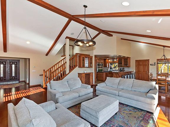 Views from all floors, open floor plan, with living room- dining area and kitchen on the main level, Master and 2 other bedrooms on second level and a den, 3rd level is designed as a guest suite/multi generational space with a bedroom and living space and new on suite bathroom. Move in condition, beautiful views of the forest, wonderful kitchen with plenty of counter space, lake rights.