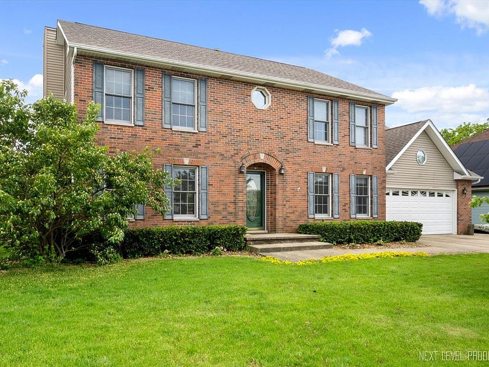 This stunning 4 bedroom, 3.5 bath home boasts an open family room with fireplace and spacious kitchen with eat in kitchen area. Plenty of room to entertain with separate dining room and sitting room. Second level includes huge primary suite with a sitting area & two walk-in closets. The primary bathroom features luxurious soaker tub, separate shower and water closet. Outside, you'll find a brick paver patio, fire pit, pool and hot tub. Perfect space for outdoor fun! With beautiful hardwood floors and fresh paint throughout, this home will go quick! Roof new in 2023, water heater 2023, HVAC 2013 Don't miss out!