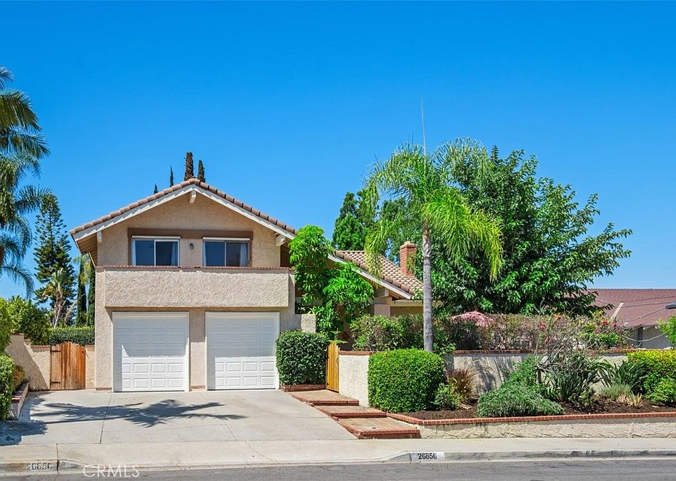 Welcome to 26856 La Sierra Drive –Located in the highly desirable Granda community of South Mission Viejo! This beautifully maintained 5-bedroom, 3-bath home sits on an expansive 7,560 sq ft POOL-SIZE LOT that’s perfect for entertaining and embracing the indoor/outdoor lifestyle SoCal is known for. Step inside through the private, enclosed front courtyard surrounded by lush, mature landscaping, your own serene retreat before even entering the home. Through the double-door entry, you're greeted with soaring vaulted ceilings, a sweeping staircase, and a spacious layout that flows effortlessly from room to room. The living and dining rooms are bright and inviting, complete with a cozy fireplace and sliding glass doors that open to your massive backyard—an entertainer’s dream! Enjoy multiple patios, a large grassy area, peace, privacy, and sunsets through the trees. Whether it's a summer BBQ or relaxing evening under the stars, this yard is ready for it all. The open-concept kitchen features an eat-in nook, step-in pantry, and a full wall of windows overlooking the backyard. It's connected to the family room, which offers a second fireplace and French doors that make outdoor access seamless. Downstairs includes a full bath and a versatile bedroom/office with double-door entry—ideal for guests or multigenerational living. Upstairs, the spacious primary suite offers sliding doors to a private balcony with peaceful views. The ensuite bath includes his-and-hers closets, a walk-in shower, and private water closet. Two additional large bedrooms, a full bath with dual sinks, and a huge bonus room (currently used as a 5th bedroom/suite) complete the second floor. Additional highlights include new HVAC and water heater, storage sheds, and the location is unbeatable! Just steps from Granda Park as well as Sierra Recreation Center with membership options for the pool, spa, water slide, fitness center, and more. Enjoy Lake Mission Viejo, where you can swim, BBQ, fish, or rent boats and paddleboards. Conveniently situated near Mission Viejo Country Club, shopping, dining, the 5 Freeway and both 73 and 241 toll roads, this home is also just a 10–15 minute drive from world-class destinations like Laguna Beach, Dana Point Harbor, and more! Inquire for more information about MULTIPLE SCHOOL OPTIONS unique to this neighborhood! Welcome Home!