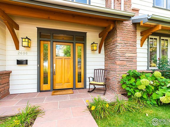 Craftsman inspiration and farmhouse style combine in this pristine Newlands 4BD/3BA featuring designer details and elegant millwork. The serene home begins with a welcoming living room with a gas fireplace. Outside, covered and uncovered patios feature a wood-burning fireplace and sunscreens for year-round enjoyment. The bright chef's kitchen is filled with custom cabinetry, granite counters, center island and high-end stainless steel appliances by Wolf and Sub-Zero. Banquette seating and a lavish dining room accommodate formal and informal meals, while a large pantry and mudroom add convenience. A guest suite with semi-private guest bath completes the lower level. Above, a tranquil owner's suite boasts a fireplace, private balcony with Flatirons views, walk-in closet and en suite spa bath. Two more gorgeous bedrooms share a Jack-and-Jill bath. Laundry upstairs and down, detached heated garage, whole-house battery backup. Perfect location close to hiking trails and downtown amenities.