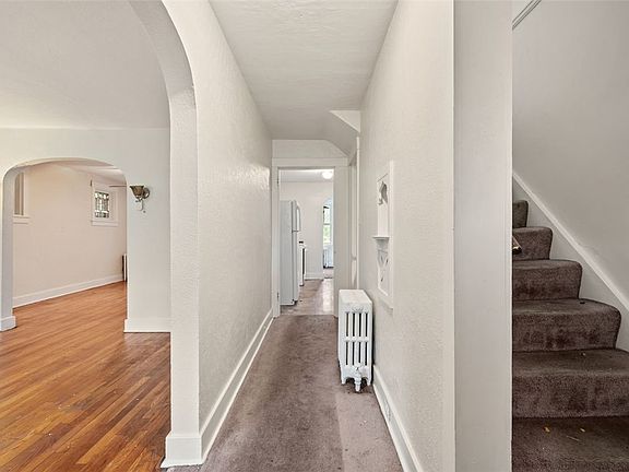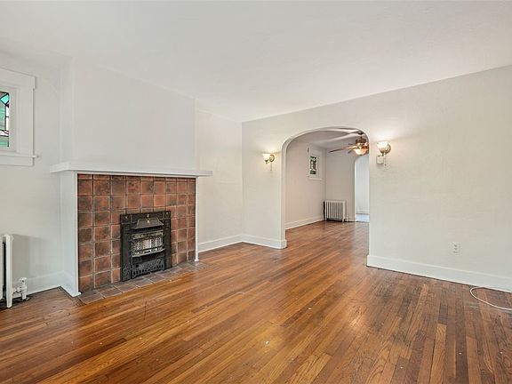 This special home offers a perfect blend of character and convenience. You are greeted by a welcoming covered front porch, perfect for relaxing afternoons. Inside, you'll find gleaming hardwood floors and a cozy gas fireplace, ideal for chilly evenings. The living room features a stunning stained-glass window, adding a touch of elegance and charm, while natural light fills every room. The spacious attic offers endless possibilities - transform it into a game room, home office, or extra storage space. A full walk-out basement provides even more potential, ready to be finished to suit your needs. The property includes on-street parking, a one-car garage, and easy access to nearby shopping and dining, making everyday living a breeze. Conveniently close to Dormont and Brookline business districts. Whether you're looking for a beautiful home or a smart investment opportunity, this gem in Brookline is a must-see!
