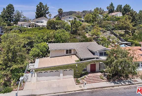 6 minutes 28 seconds from Sunset. Spacious, beautifully renovated 4 bedroom, 3.5 bath contemporary home in the desirable hills of Mandeville Canyon. The two story entry with gorgeous bamboo floors leads into an open floor plan with ample natural light. The family room has a beautiful brick fireplace, and opens to the large dining area and kitchen. The kitchen has been renovated with stainless steel appliances, modern built-ins, and oversized center island with breakfast bar. Bonus room with French doors off the entry, perfect for an office space. 3 sizable secondary bedrooms upstairs, with two updated bathrooms. Master suite has walk-in closet and renovated bathroom with dual vanity, and separate tub and shower. Balcony off the master suite overlooks the beautiful, private woods-like backyard with mature trees, in-ground spa, vegetable garden, and brick patio. Three car garage with laundry inside. The open layout and gorgeous backyard make this home an entertainer's dream.