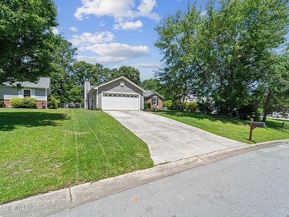 Welcome home to this charming and move-in-ready 3 bedroom, 2 bath residence located in the desirable Autumn Chase neighborhood. Recently refreshed with new paint and new flooring throughout, including brand new carpet in the master bedroom, this home is perfect for comfortable and stylish living. The spacious living room features a vaulted ceiling and a cozy fireplace, ideal for relaxing on cooler days. The large kitchen boasts plenty of space for cooking and entertaining, complete with an eat-in breakfast bar and room for a dining table. The generously sized master suite includes a private en-suite bathroom and a large walk-in closet. Two additional bedrooms and another full bathroom provide plenty of room for family, guests, or a home office. Enjoy the outdoors in the fenced-in backyard, great for pets, play, or gatherings. Located just minutes from Camp Lejeune's main gate, this home offers convenience, comfort, and style all in one package. Don't miss your chance to make 2686 Idlebrook Circle your new home—schedule your showing today!