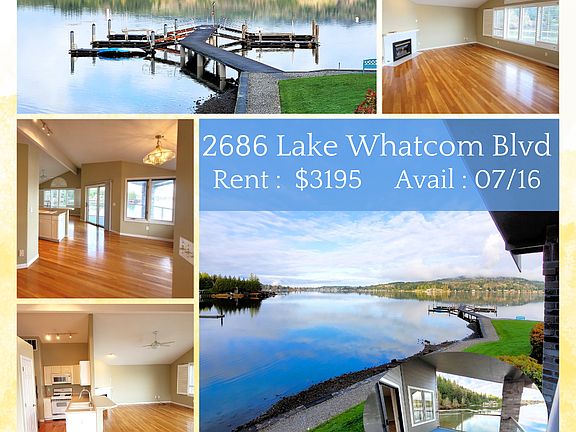 - Exterior features: 2.5 Bathrooms, 3 Bedrooms, 6 Month Lease Available, Boat Slip Included, Lake Whatcom, Landscaping included in rent, Lawn, Natural Light, No Utilities included in rent, Stainless Steel Appliances, View Type: Lake View