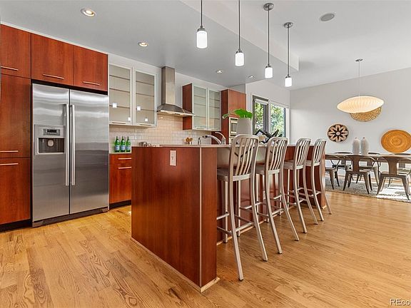 Outstanding modern single family home in Northwest Denver's West Highland Neighborhood! Don't miss this wonderful open layout and beautiful custom kitchen with center island, spacious dining room with lots of natural light, double sided gas fire place creates two unique spaces ideal for library/office and living room area. The wide open wood staircase with a large picture window provides access to the upstairs oasis, including the primary bedroom with en-suite, double closets, as well as a private balcony. Additionally, there are 2 spacious bedrooms, a full size bath and laundry room. Downstairs you will love the media room, completely wired and ready for your flat screen tv and entertainment system. There is an additional office or music room with color changing LED lighting. There also is a large bedroom and a 3/4 bath perfect for visiting guests. Outside you will enjoy the private patio with gas fire pit, mature landscaping and multilevel yard, perfect for entertaining. The garage has extra high ceilings and a electric vehicle charging station. The home has a 6.48 KW solar electric panel system that is owned and included with the property. Close to all the happenings this wonderful neighborhood has to offer, just a short walk to Sloan Lake and 32nd & Lowell.