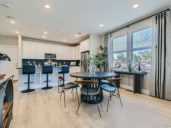Welcome to The Horizon 4 Townhome by Brookfield Residential in Midtown, where modern amenities meet convenient living. This stunning end-unit features 3 bedrooms, 2.5 bathrooms, and a versatile main-floor office/flex space—perfect for remote work or additional living space. Enjoy a welcoming front porch and a private fenced patio, plus access to a beautiful 20-acre park and trails for nature lovers. Inside, the open-concept layout boasts high ceilings and abundant natural light, with a modern kitchen that includes a large island, quartz countertops, and 42" white cabinets. The upgraded hard surface flooring and energy-efficient features, like a high-efficiency furnace and tankless water heater, add both style and savings. Located just 5 miles from Downtown Denver and close to major highways, this townhome offers a perfect blend of comfort and convenience. Photos are of the model home; actual colors and selections may vary.