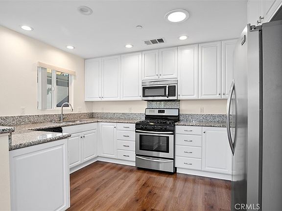 Beautifully upgraded, move-in ready ground-level 2 bedroom, 2 bathroom home spanning 1,371 square feet in the heart of Capo Beach. This light and bright residence features contemporary wood flooring throughout the main living areas, carpet in the bedrooms, and an updated kitchen with a spacious pantry, stainless steel gas stove, built-in microwave, stainless steel dishwasher, granite countertops, a raised breakfast bar, and tons of cabinet and storage space. The open floor plan flows seamlessly from the kitchen to the dining and living rooms, complete with a cozy fireplace and abundant windows that bring in natural light and refreshing ocean breezes. Both bedrooms are generously sized, and each bathroom features dual sinks, and raised vanities with granite counters. A convenient washer and dryer are located in the home and are included with the rent.
