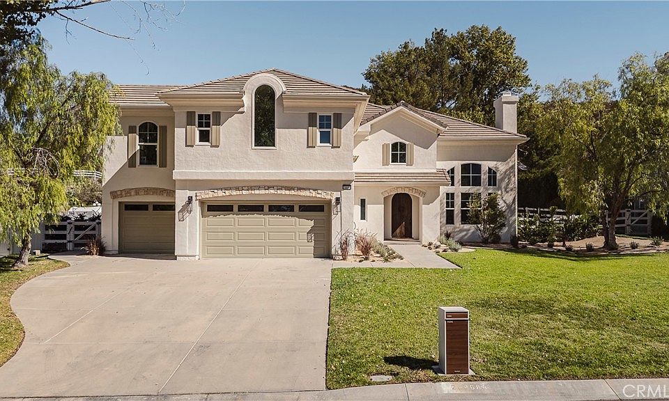Welcome to Sand Canyon’s finest masterpiece, a true piece of art. Situated near Sand Canyon Country Club, this fully curated estate offers 5 bedrooms, 4 bathrooms, and 3,812 sq. ft. of living space on an expansive 34,874 sq. ft. lot. Upon entry, you’re greeted by a grand entrance where soaring ceilings and sunlight set the tone for the elegance of the home. Every detail has been thoughtfully redesigned, showcasing brand-new wide-plank flooring, new cabinetry, fresh interior and exterior paint, all-new windows, dual French doors, new interior doors, and seamless quartz countertops across its interior. With signature hardware and exquisite finishes, this home combines an inviting ambiance with elevated design, highlighted by graceful arches that enhance its architectural appeal throughout. Step into a true chef’s dream kitchen showcasing a professional 48-inch range, 42-inch sink, brand-new appliances, a 10-foot island, pot filler, wine fridge, built-in microwave, and a charming breakfast nook—perfectly designed for both cooking and entertaining. The primary suite serves as a private sanctuary with a cozy fireplace, balcony overlooking the backyard and pool, a luxurious stand-alone tub, his and her sinks with marble countertops, and a spacious walk-in closet, complemented with a bonus room ideal for a home office, nursery, or personal fitness space. Along with the primary suite, the home features four additional bedrooms and a spacious loft offering versatility for a game room, home theater, or additional lounge area. Walk outside to your resort-style backyard oasis featuring a sparkling pool, built-in outdoor grill, fire pit, basketball court, and expansive patio—offering the ultimate space for entertaining and relaxation, surrounded by beautifully maintained privacy hedges. This home offers everything you could desire, with a grand entrance, refined design, and thoughtful upgrades throughout, delivering a one-of-a-kind living experience.