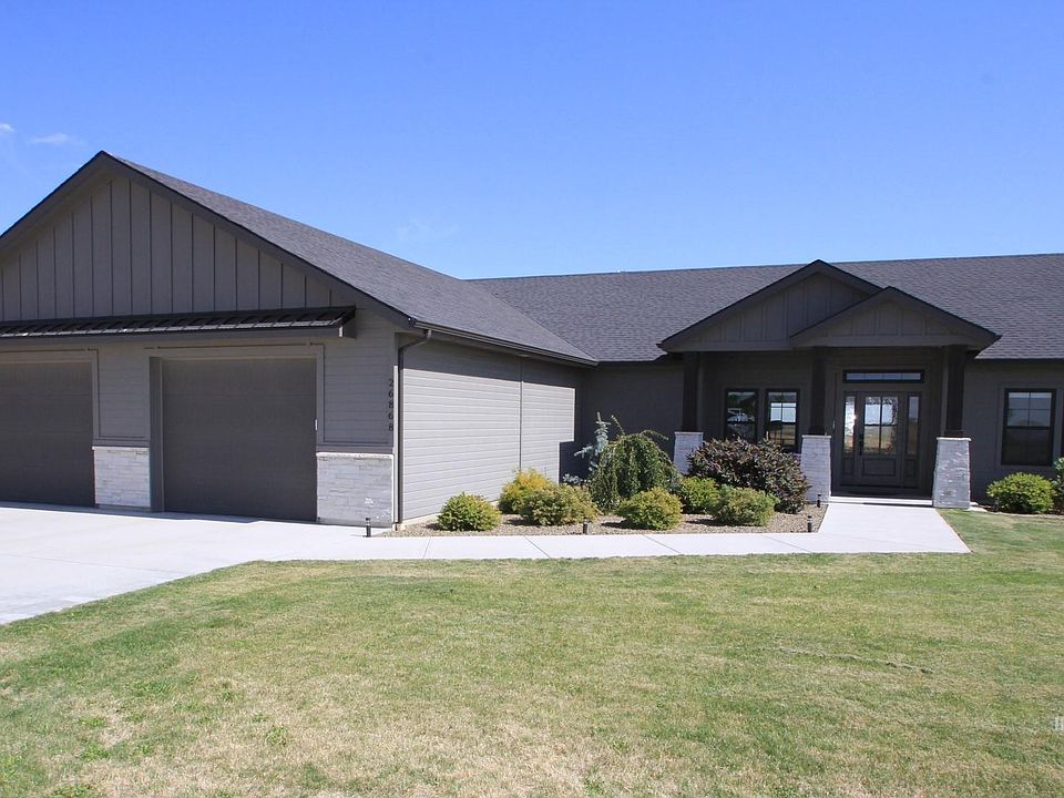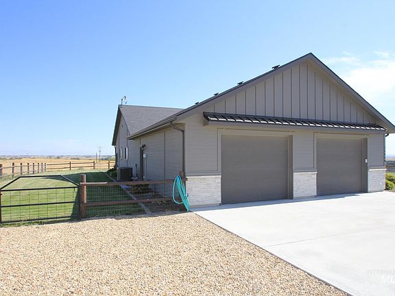 Experience refined country living in this exceptional custom-built home, offering 3 bedrooms and 2 bathrooms in a spacious split floor plan. Designed with soaring 9- and 10-foot ceilings and abundant windows, the home is filled with natural light and a true sense of openness. The gourmet kitchen is a showpiece, boasting a 10-foot island, granite counters, stainless steel appliances, and an oversized butler’s pantry with outlets—perfect for today’s modern chef. The great room features a striking electric fireplace with heat blower and surround sound wiring, creating an inviting space for entertaining or relaxing in comfort. The luxurious master suite includes dual vanities, a walk-in shower, and thoughtful finishes for style and ease. High-quality design continues with luxury vinyl plank flooring, premium windows, and enhanced insulation, including noise-canceling walls between the home and garage. Outdoors, enjoy a large covered patio, 3 raised garden beds with drip irrigation, a spacious shed, and a private well with ample capacity. Car enthusiasts will love the 5-car garage with 220 wiring and stainless sink, ideal for projects, toys, and storage. Set on 3 serene acres at the end of a private lane, this property offers sweeping views, privacy, and convenience just 10 minutes from the freeway. A rare opportunity to own a retreat that blends elegance, comfort, and practicality.