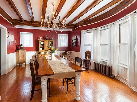 Step into a lifestyle where your home is the center of holidays, family gatherings, birthdays and backyard barbecues. Everybody can have a special bedroom all their own, full of light and space. The big open kitchen gives all the cooks plenty of elbow room and there's even a sweet, cozy breakfast nook where you can search for that perfect recipe. Celebrations with friends and family are a breeze in the dining room, with its endless custom-built farm-style table (included with sale) that can seat up to 20! The two front parlors are made for conversations, games, movie nights! Also on the parlor floor is a must-see charmer of a powder room for your convenience and comfort! On the second floor is a lovely oversized master bedroom with en-suite bath; two additional spacious bedrooms; and a second full bath that is a real stunner---extra-large tub, separate stall shower, enough space to do your morning calisthenics, covered in vintage white tiles! The third floor has two more bedrooms and another full bath; a huge laundry room with storage galore, more cabinet space than most suburban kitchens, loads of counter space, a sink, and still plenty of space for ironing--unbelievable! The bright, cheerful finished basement features the fourth full bathroom; an enormous Pilates studio with a mirrored wall and interlocking rubber floor tiles; a playroom with shelves and built-in benches, and media; a full "summer kitchen" that is used as a spacious kids' arts and crafts studio. The roomy back yard offers total privacy for grilling and gardening and games. Driveway, two-car garage, enclosed front porch, and lovely front lawn completes this picture of homey bliss in the heart of Brooklyn!