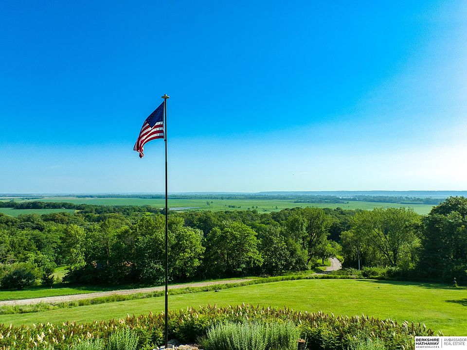 OPEN HOUSE CANCELLED - PROPERTY IS PENDING. OWN THE BEST VIEW IN OMAHA! This SPECTACULAR 41-ACRE OMAHA estate (Washington County w/ Ft Calhoun Schools) is on the market for the FIRST TIME! Enter the gates and prepare to be AMAZED by this nature-filled PARADISE rich with trees, meadows, birds/wildlife, a POND, trails, and more! Watch eagles soar from 1200 ft elevation at this BEAUTIFUL 1.5 story home with GORGEOUS landscaping/patios, designed to ENJOY the INCREDIBLE VIEWS! Featuring 5 Beds/4 Baths/4879 fsf, 2-car att (heated) garage, UPDATED kitchen, cozy living room w/ wood burning fireplace, MAIN LEVEL PRIMARY SUITE w/ en suite bath/California closet, lower level bar/kitchen/living, home gym/sauna, and bathroom. New Geothermal. SOLAR for back-up. Outside, a 2-car det garage/workshop, a unique high ceiling outbuilding, and a shed! VERSATILE BUILD OPPORTUNITIES - 5 TAX LOTS. Nearby parks/trails! Close/easy access to airport/hwy/interstate! Also listed as MLS#22513202 with 10 Acres.