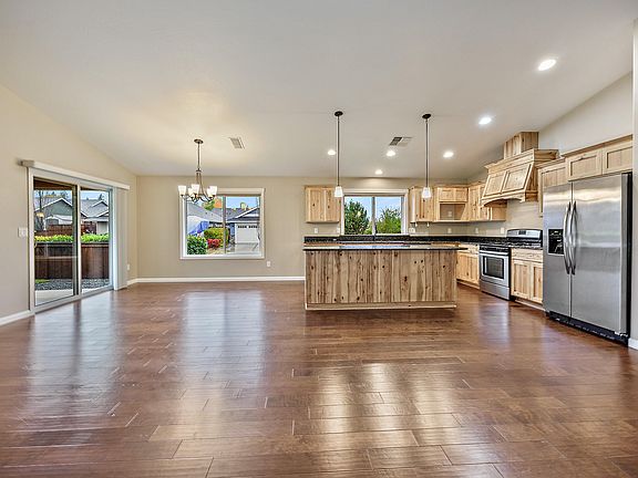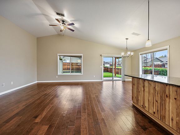 This turn-key 3BD/2BA stands out from the crowd! Attractively designed, well-maintained, and positioned on a roomy corner lot. Expansive vaulted ceilings over an open floor plan, surrounded by windows hosting great natural light. Gorgeous kitchen w/hickory cabinets, raw-edged granite counters, island w/breakfast bar, stainless steel appliances, and a well-appointed pantry. Mountain views from the kitchen windows. Living room pre-plumbed w/gas for your future fireplace. Hickory & granite finishes continue in the dedicated laundry room and both bathrooms! Master suite set at the back of the home. Enjoy a private walk-in closet, dual vanity, enclosed toilet, shower/tub combo, and exterior access to the spacious covered patio. Two-car garage. Interior & exterior repainted Dec. 2022. Priced to sell quickly!