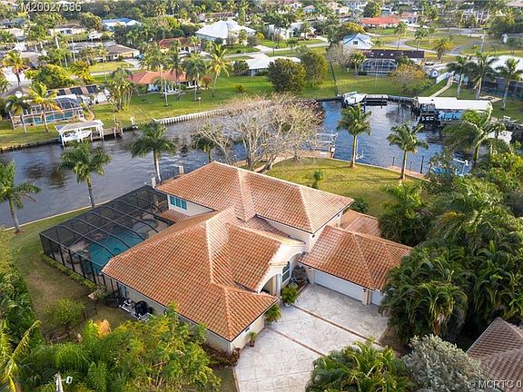 This beautifully appointed property spans over 300 feet of ocean access waterfront. Rare, unique, breathtaking. By the numbers, this is an incredible opportunity. Four spacious bedrooms on the ground floor, four full baths, plus den or possible 5th bedroom. In-law suite upstairs. Home elevator, stunning marble floors, gourmet chef kitchen, impact rated windows and doors.This breathtaking, half acre waterfront home is fully fenced and gated. Recently built sun shelf pool, hot tub and waterfall. The screened patio, bar and kitchen is a hit rain or shine.Your boating adventures will be memories for the rest of your life. The waterfront includes two docks, two boat lifts for large and small, and a personal watercraft or JetSki lift as well. Concrete bulkhead and cap, wrapped pilings and lights, power and water, youre good to go. Indoor and outdoor sound systems, television screens. Three-car garage with one set up as air conditioned man-cave, craft room or she-shed.
